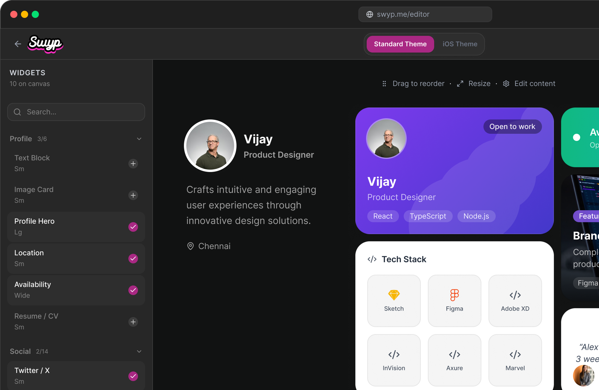 - Live at swyp.me/yourname in seconds